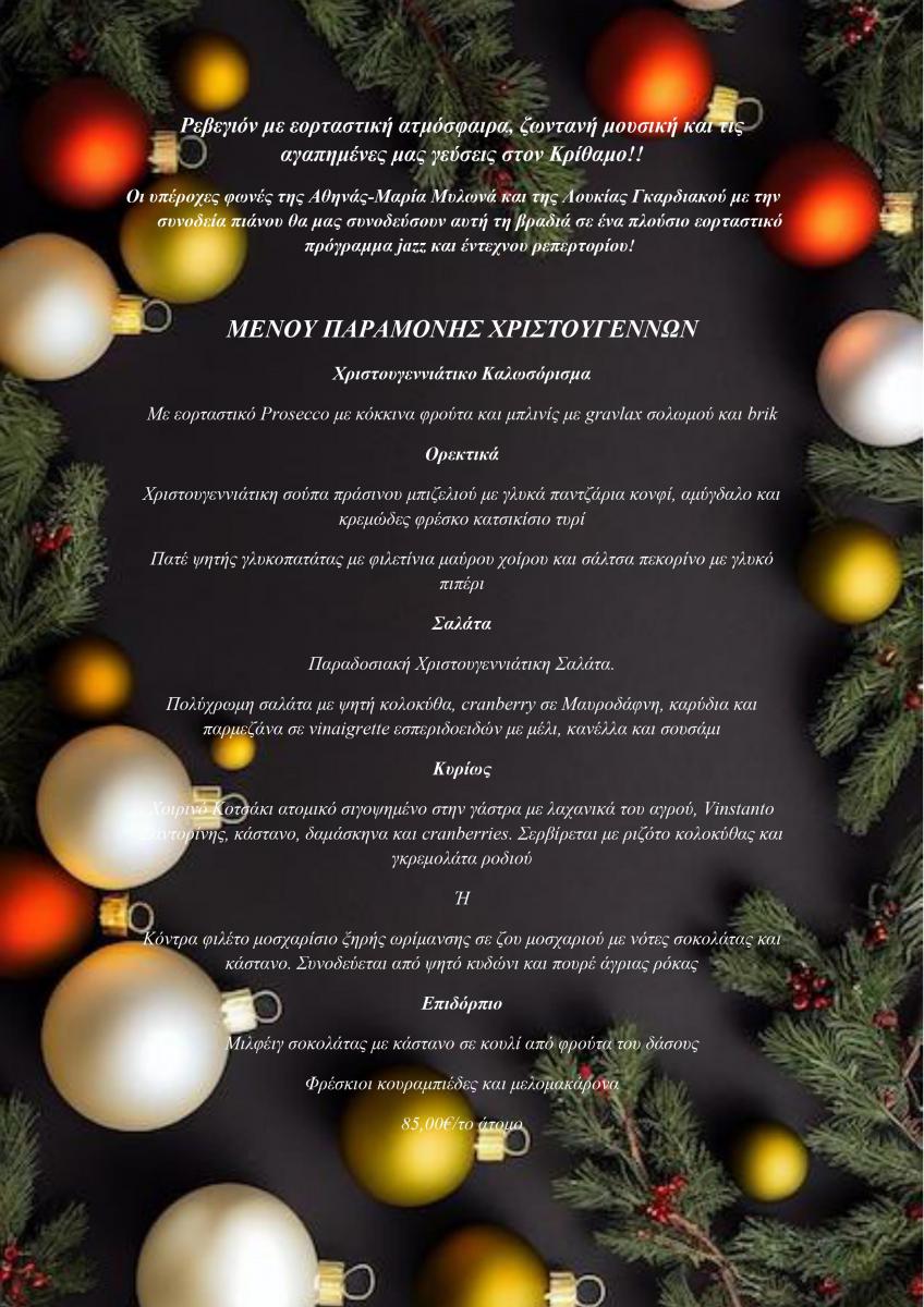 Ρεβεγιόν με εορταστική ατμόσφαιρα, ζωντανή μουσική και τις αγαπημένες μας γεύσεις στον Κρίθαμο!!